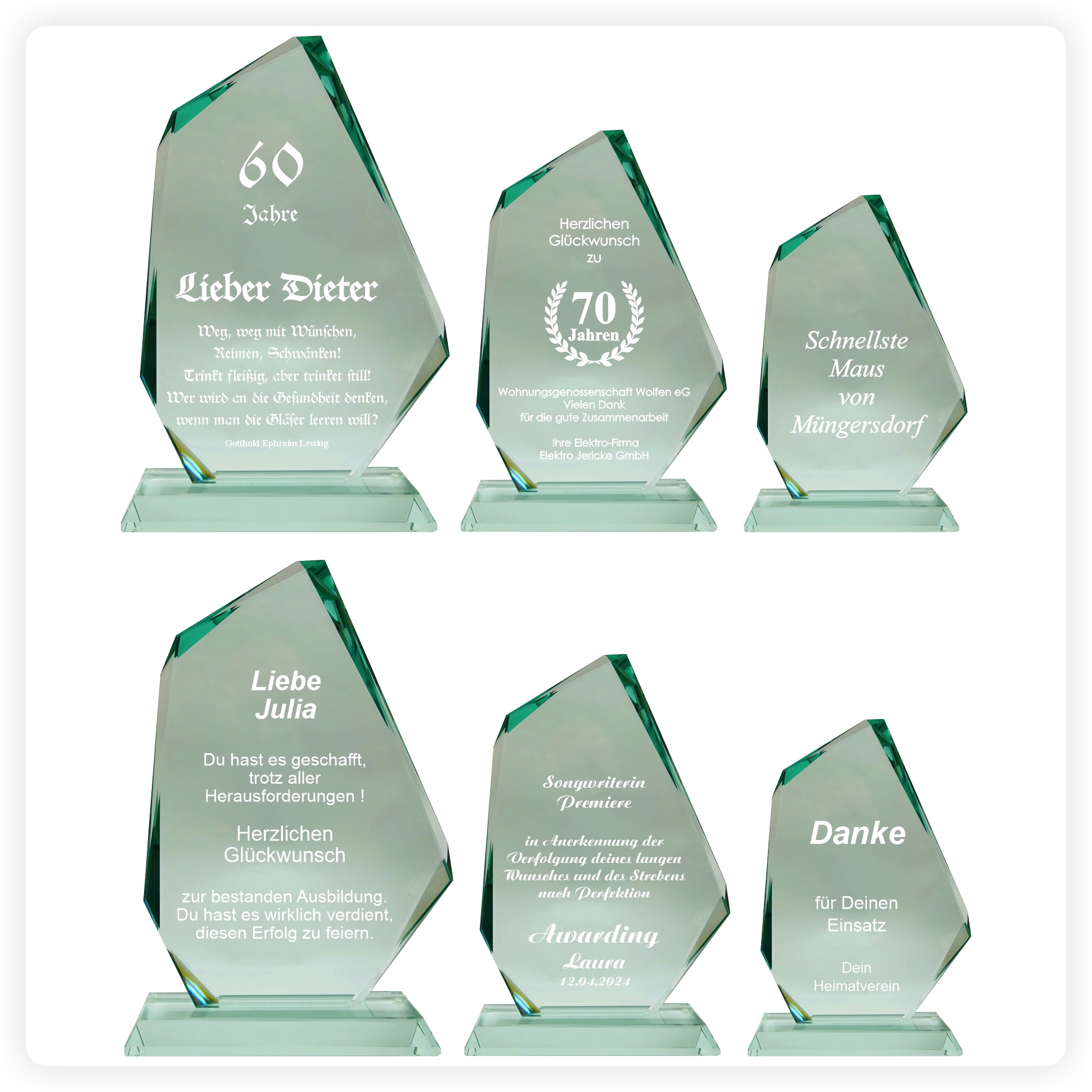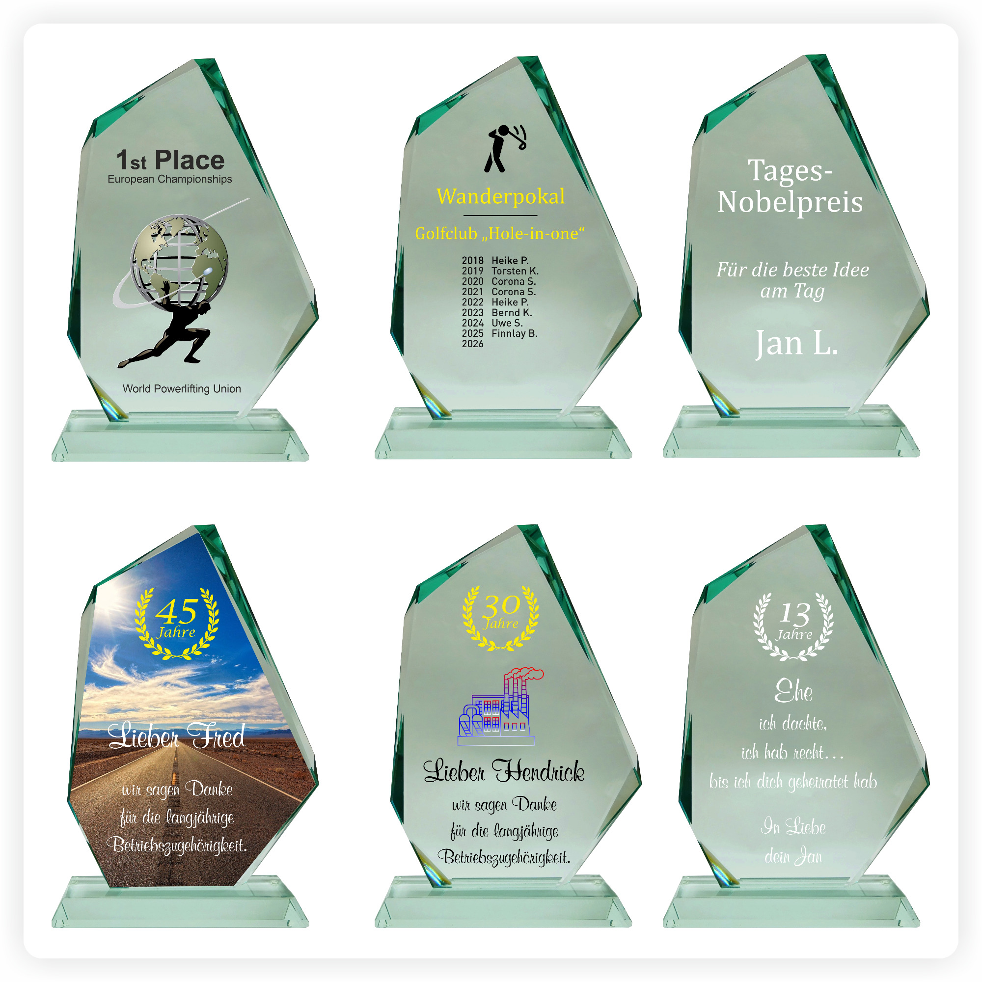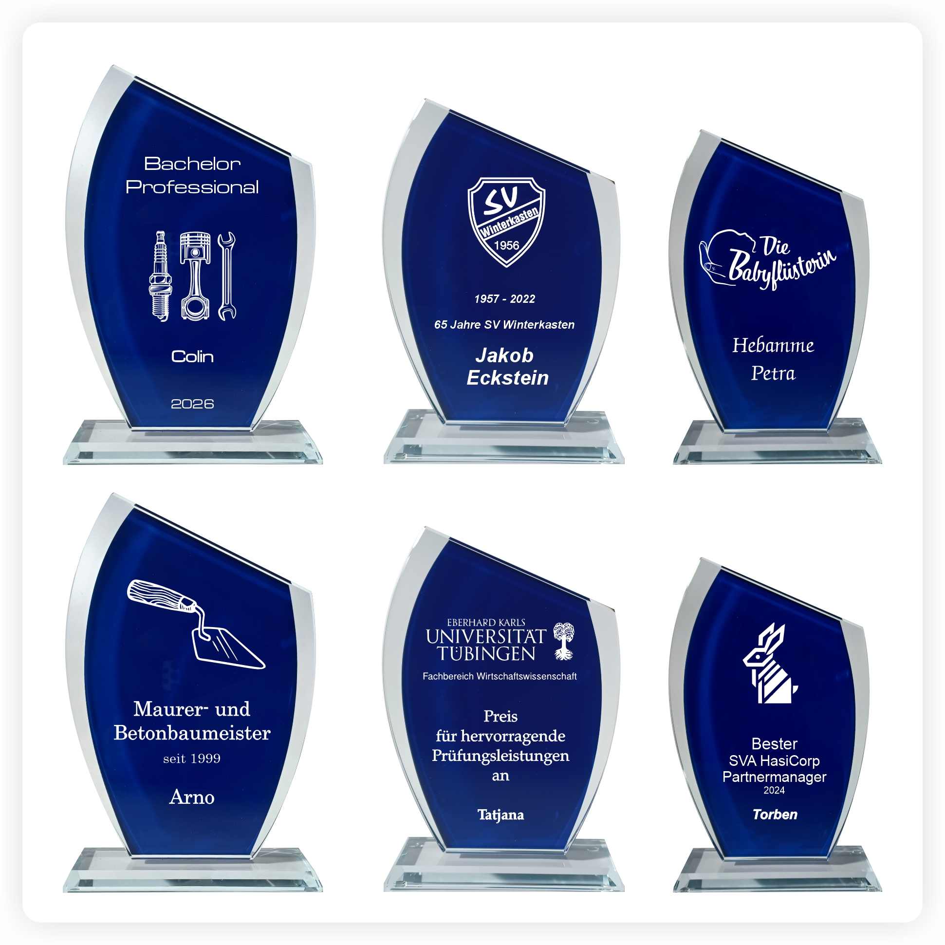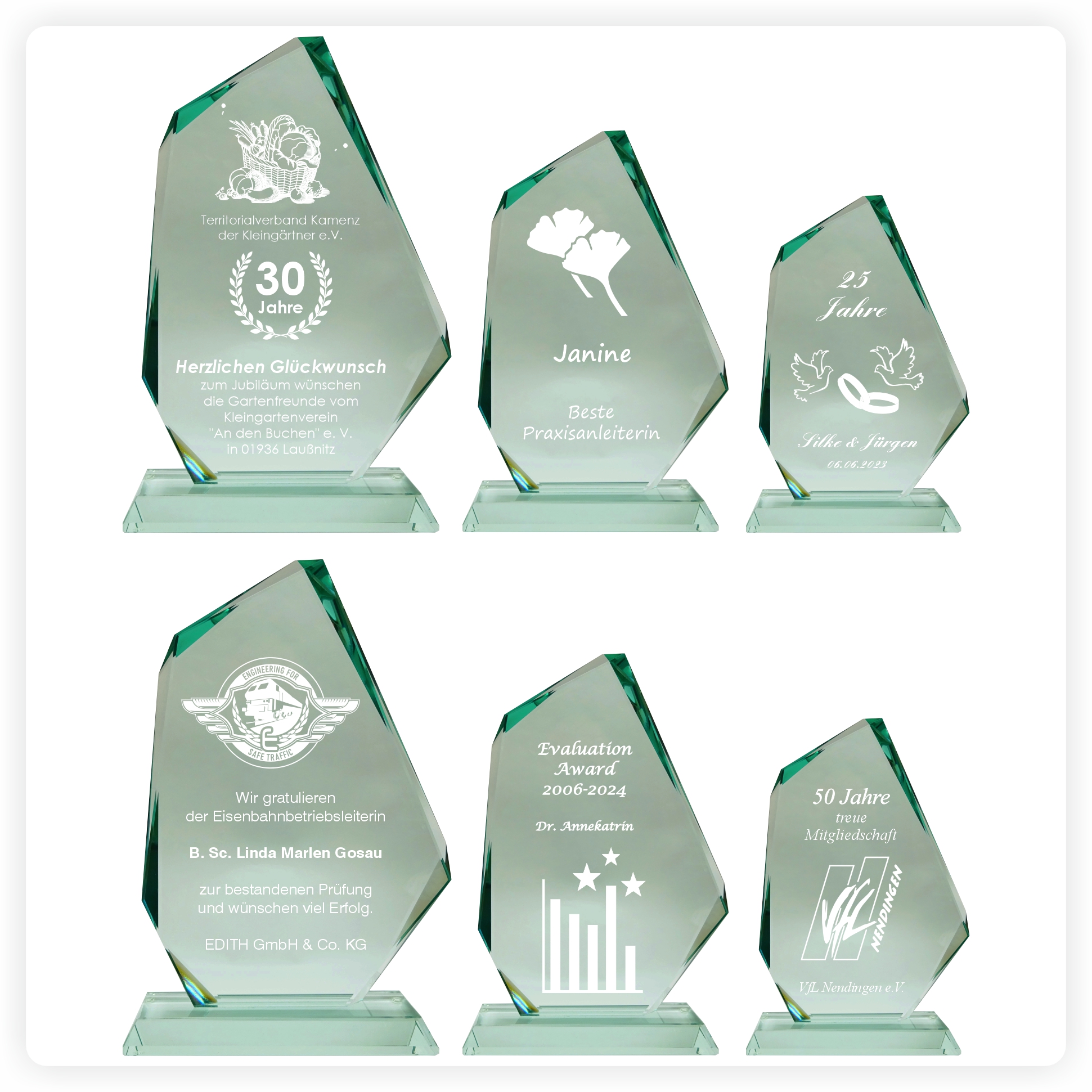 Diese Glasformen bieten eine klare und moderne Optik für Auszeichnungen.