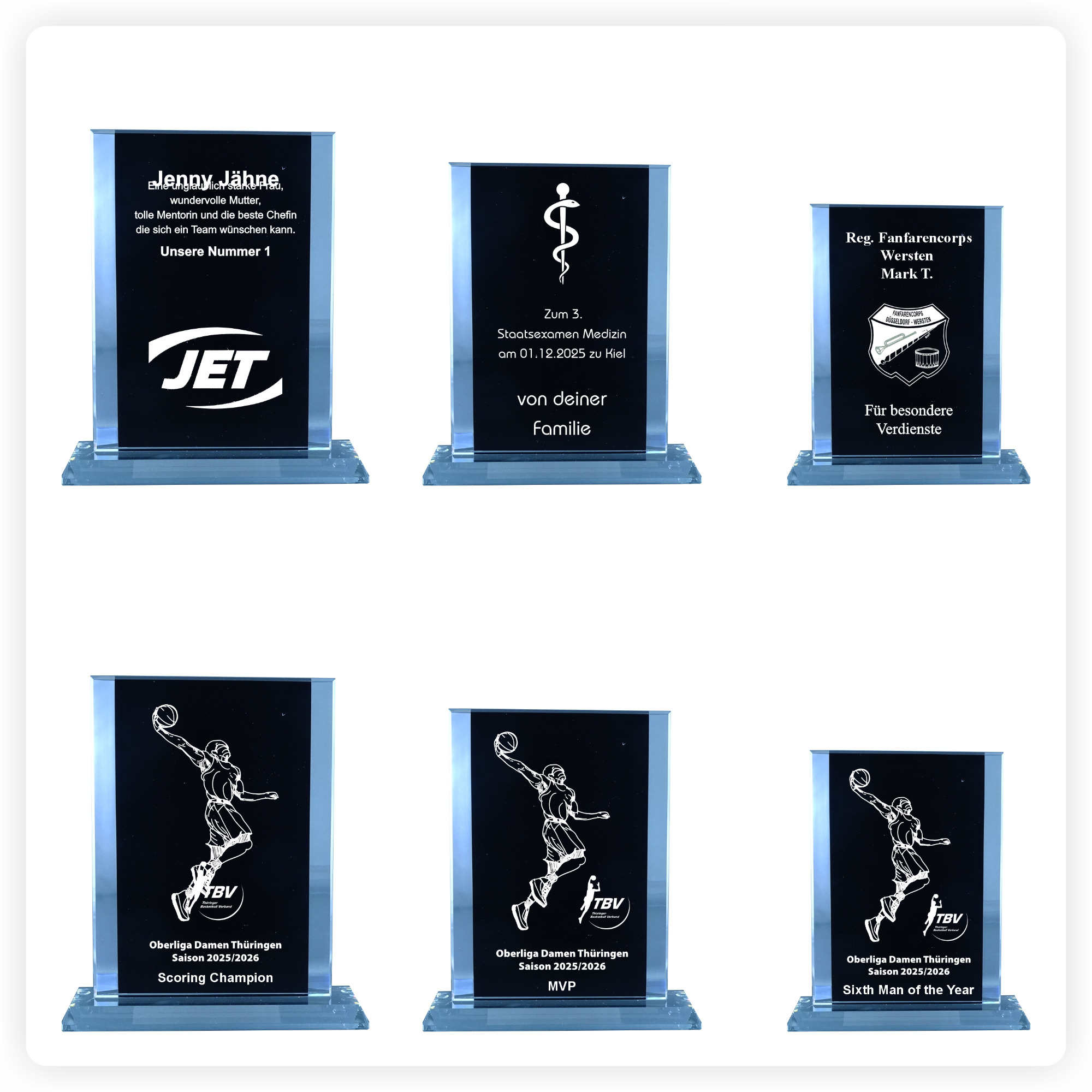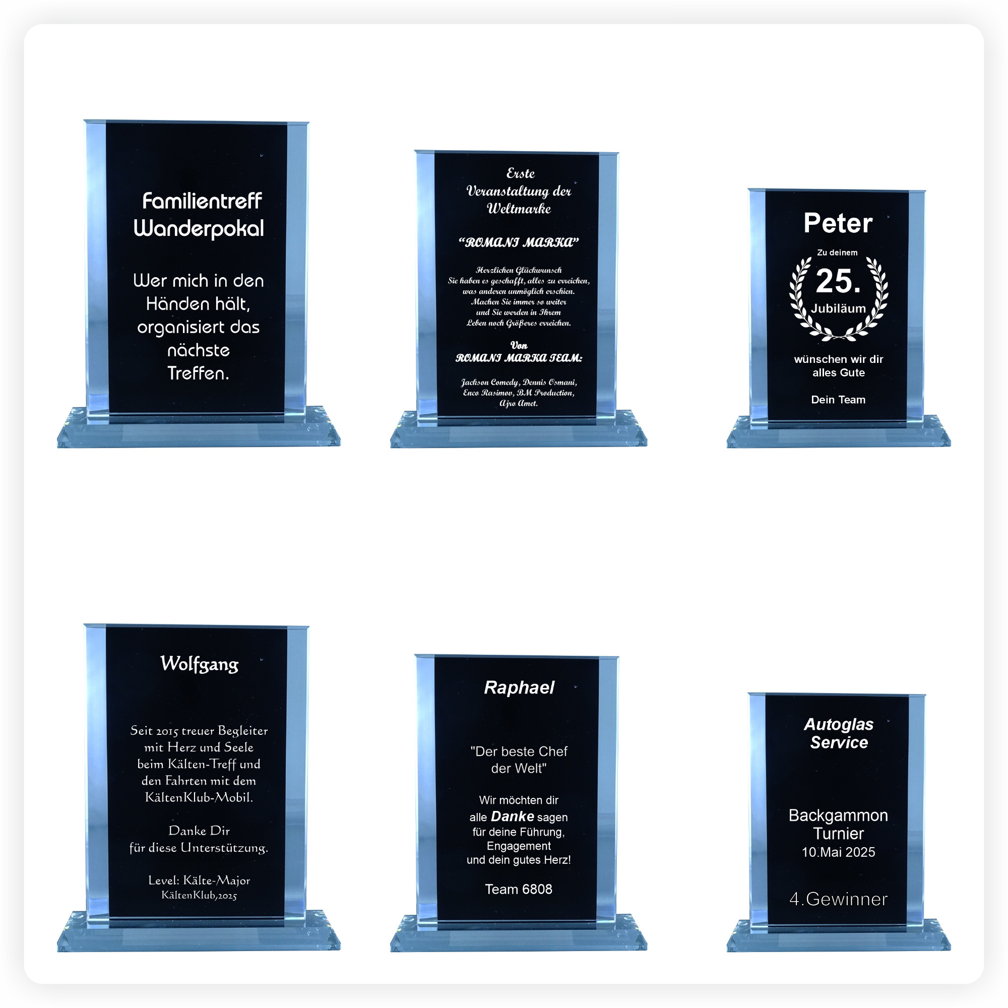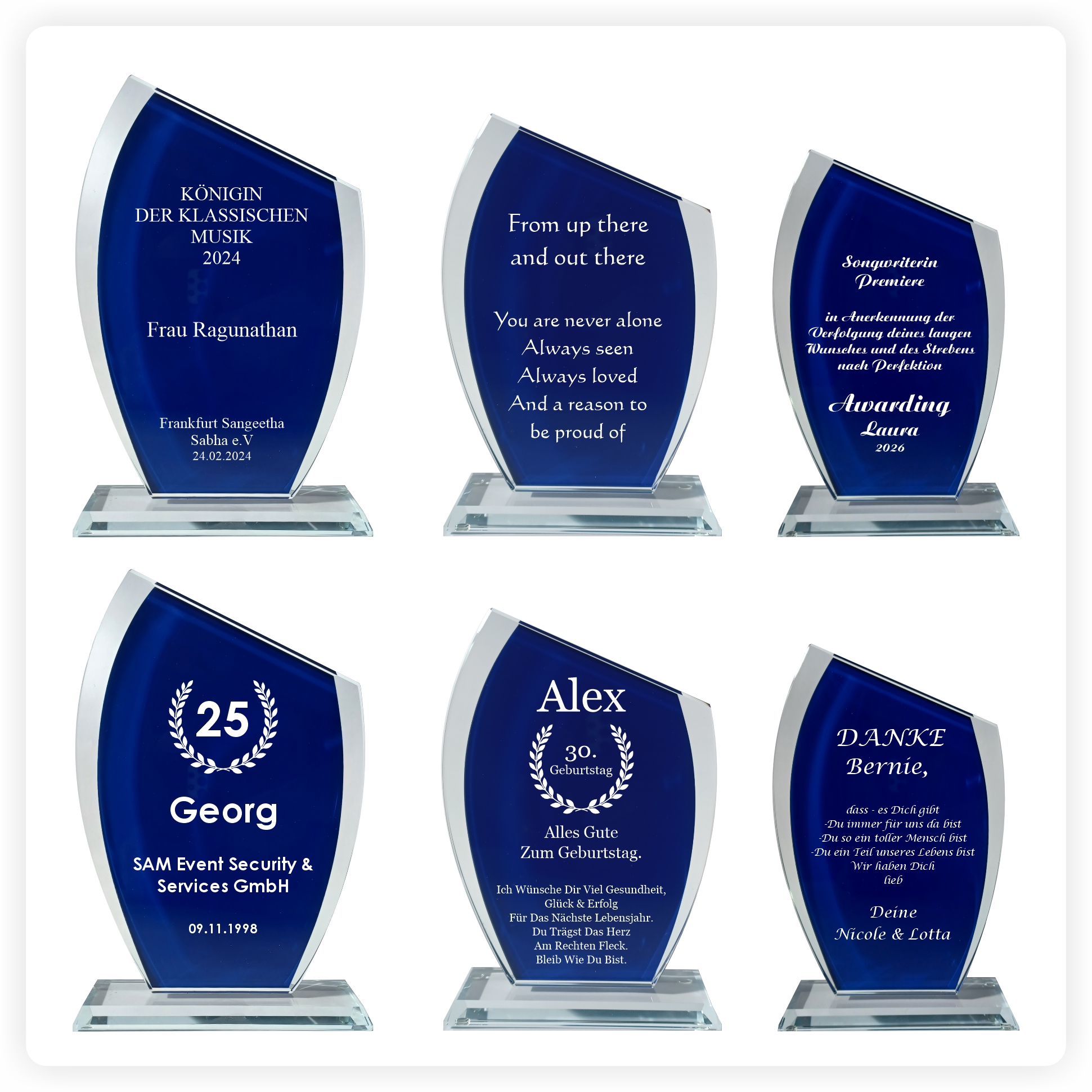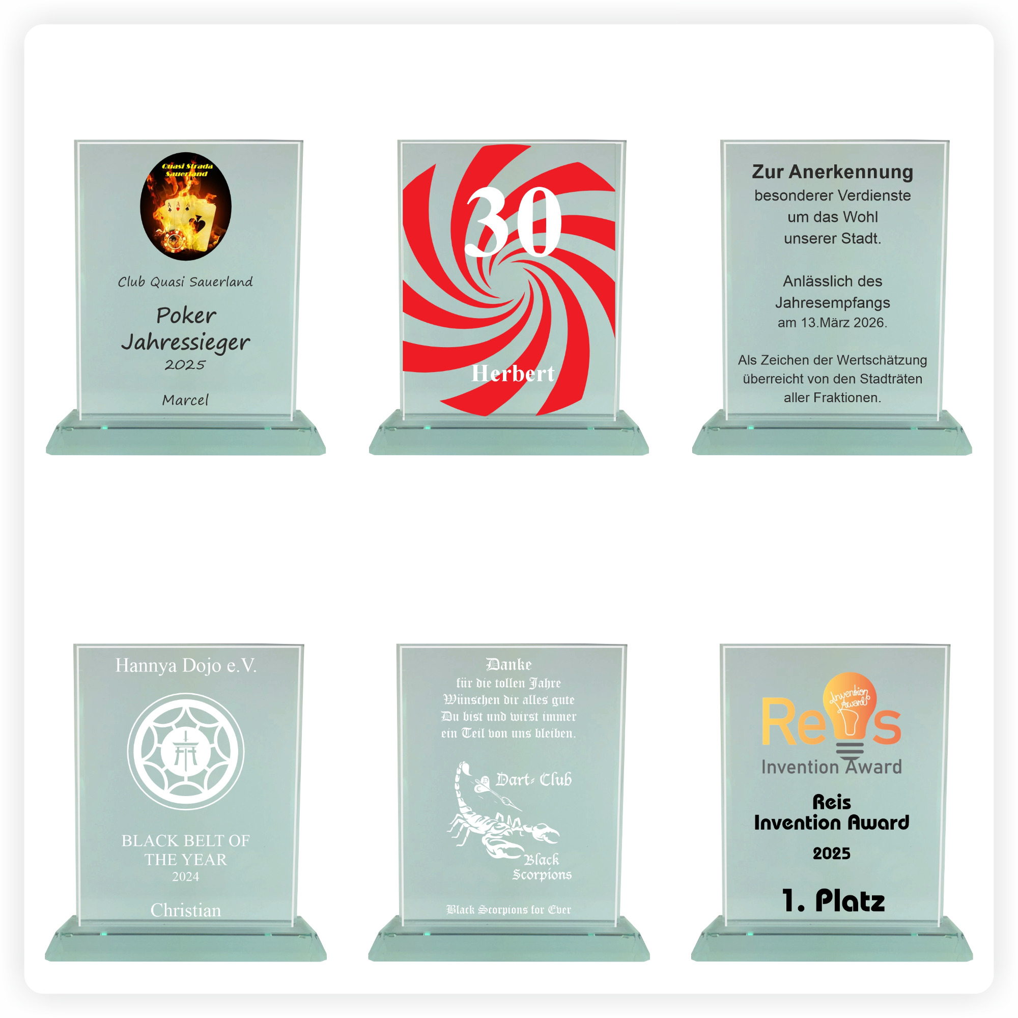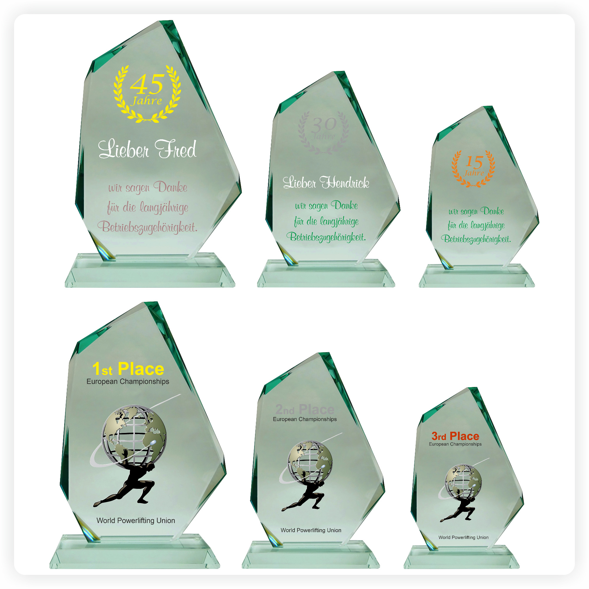 Diese Glasformen bieten eine klare und moderne Optik für Auszeichnungen.