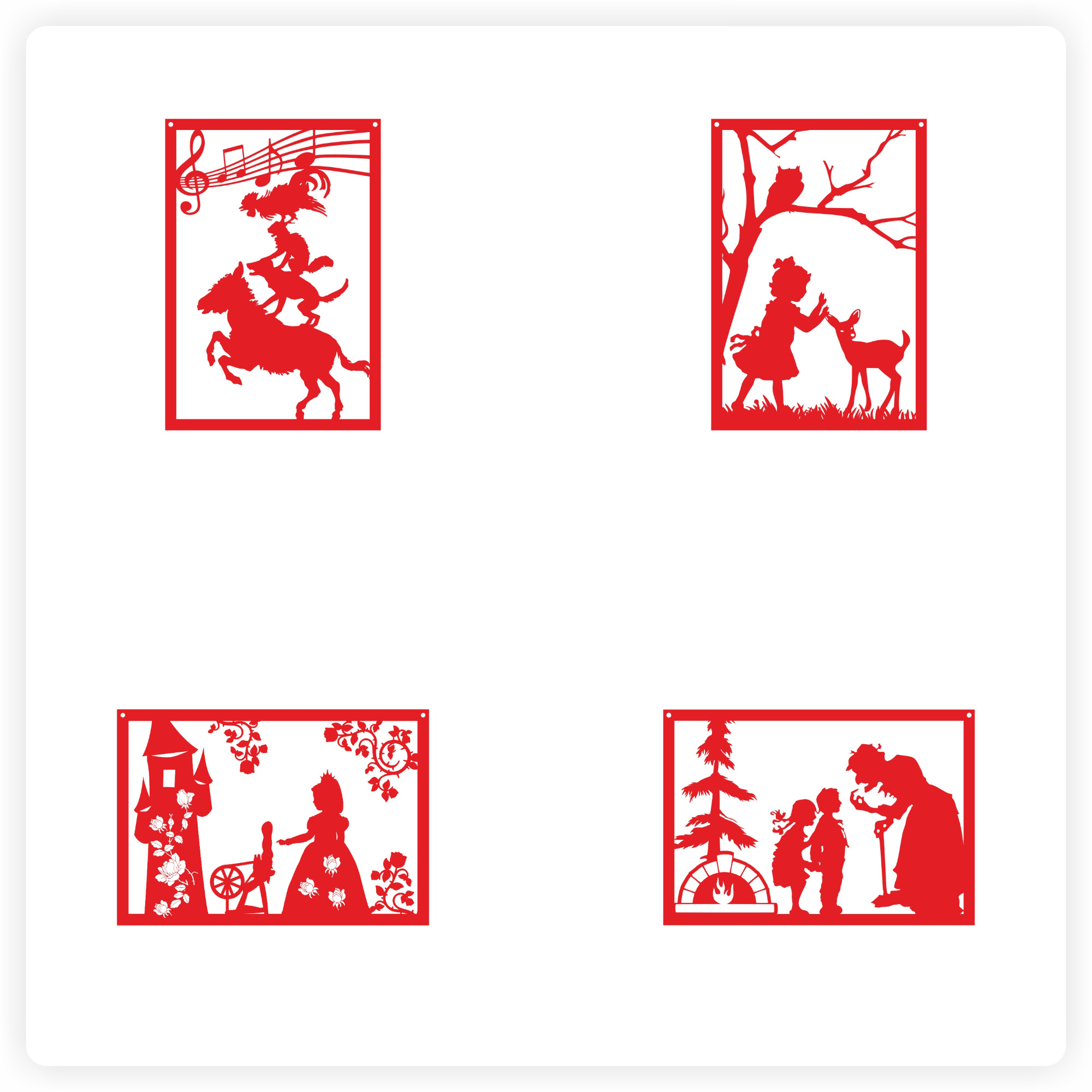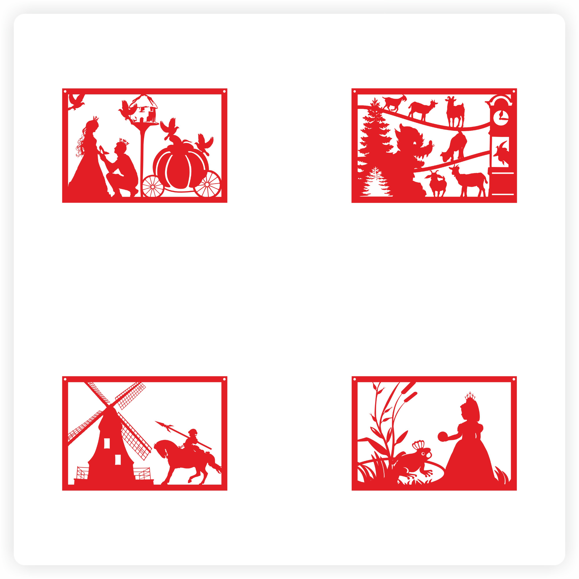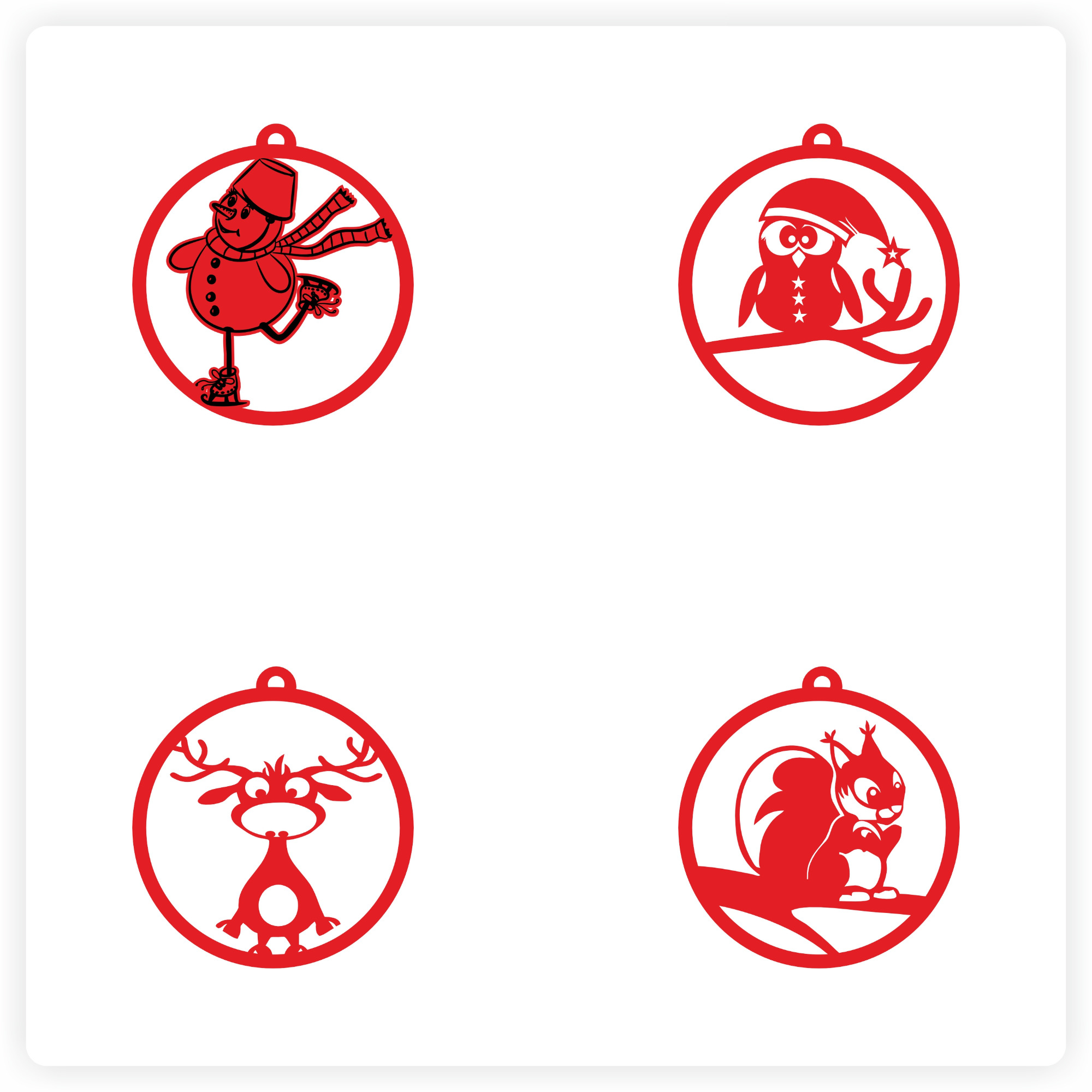 Die Motive werden je nach Ausführung gelasert (weiße Bereiche) oder farbig gedruckt.