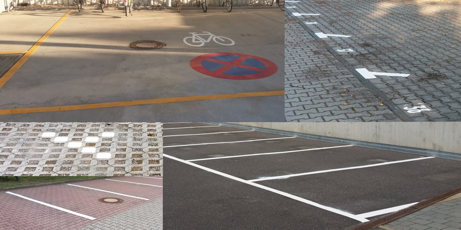 In unserer Galerie sehen Sie Beispiele professioneller und dauerhafter Parkplatzmarkierungen für Unternehmen, öffentliche Einrichtungen und private Bereiche.
